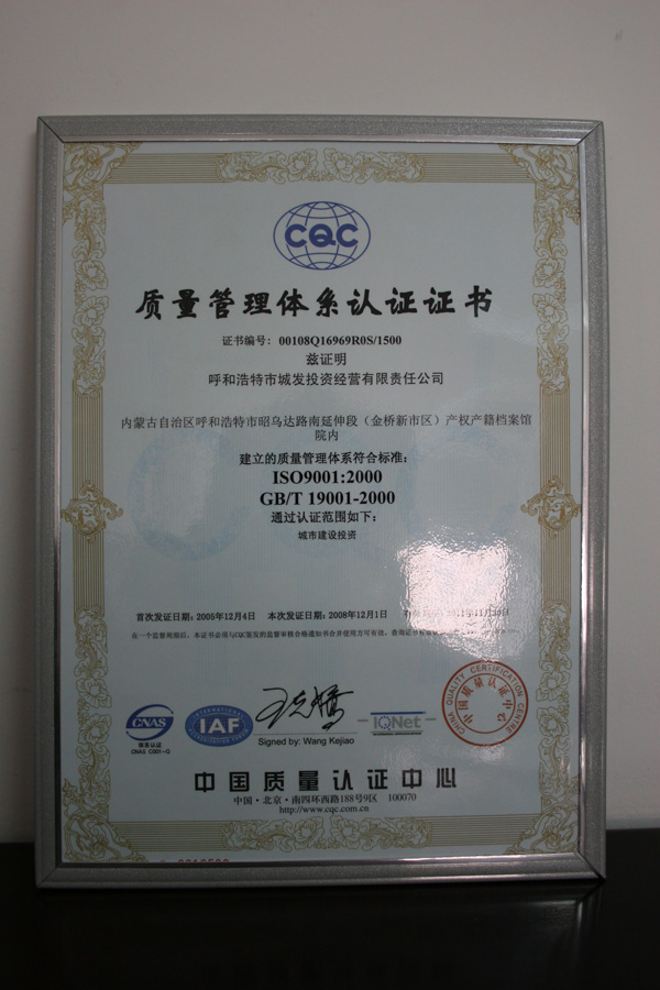 質(zhì)量管理體系認(rèn)證證書(shū)