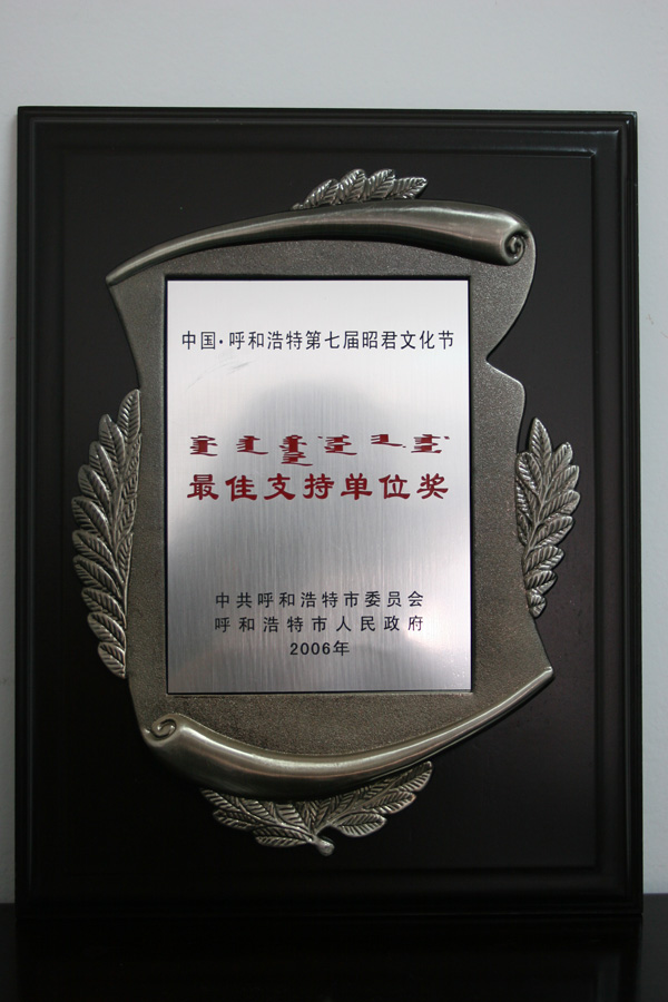 中國·呼和浩特第七屆昭君文化節(jié)最佳支持單位獎(jiǎng)