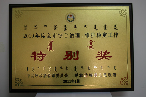 2010年度全市綜合治理、維護穩(wěn)定工作特別獎