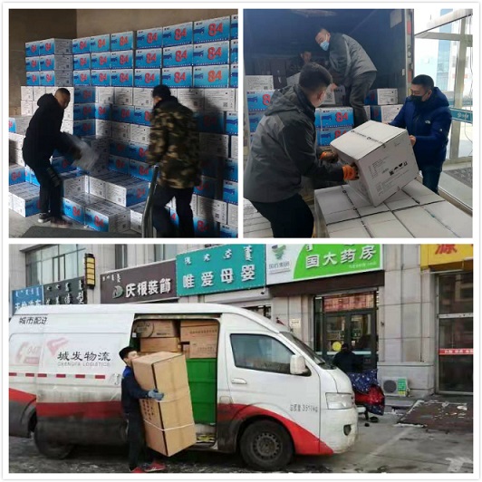人員甚至連一頓熱飯都來不及吃;為配送人員配備口罩等防疫物資、普及防疫知識以防交叉感染。經統計,自1月24日起,城發(fā)物流已累計完成防疫物資配送44車次。