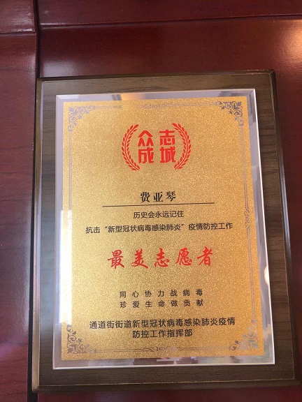 3月16日,城發(fā)公司宣教部費(fèi)亞琴同志被呼和浩特市回民區(qū)通道街疫情防控工作指揮部授予最美志愿者榮譽(yù)稱號。涓涓細(xì)流匯成滔滔江河。不積硅步,無以至千里;不積小流,無以成江海。一個(gè)的力量雖然有限,但在大家眾志成城的共同努力下,形成的力量足以撼天動(dòng)地,在萬萬千人一齊燃燒自己而形成的熊熊火光中,我們總能看到勝利的曙光,戰(zhàn)爭疫情!費(fèi)亞琴這樣說道。
