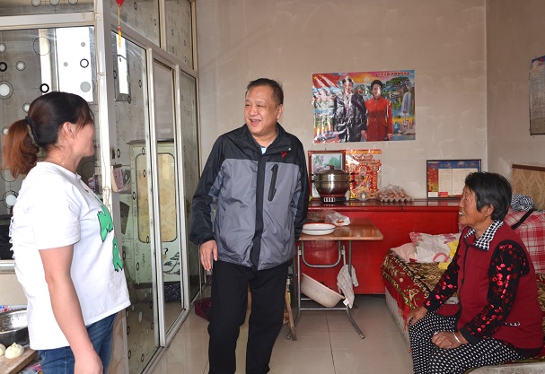 一下車,呂德育、吳利勤就走進了“一對一”包扶貧困戶翟金蓮老人家中,老人因患有腦梗,年歲又高,沒有勞動能力,導(dǎo)致家庭貧困。呂德育關(guān)切地詢問了老人近來的身體健康狀況,仔細(xì)地查看了家里的環(huán)境衛(wèi)生情況,并向老人送去了自己的慰問金。老人感激地指著習(xí)主席的畫像說:“共產(chǎn)黨好,習(xí)主席好,多謝你們領(lǐng)導(dǎo)干部關(guān)懷和照顧,吃不愁,穿不愁,居住環(huán)境也干凈了,病了也有村合作醫(yī)療。我們老人趕上了好時代,才過上了這樣幸福的生活。”在交談中,呂德育再三叮囑老人要保重自己的身體,囑咐村干部要多照顧老人,特別要注意老人的身體健康和居家環(huán)境衛(wèi)生,讓老人度過一個幸福、安詳?shù)耐砟辍堄?、云崗、武云、趙永強也分別走訪調(diào)研了“一對一”包扶貧困戶,征求了貧困戶的意見和建議。