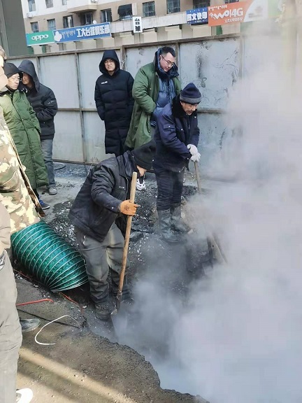 19日晚上10時,歷經(jīng)15個小時搶修完畢。搶修結(jié)束后,搶修師傅們從挖開的坑里出來后,身穿的工作服上沾滿了泥漿,衣服也被熱氣蒸濕了,時值寒冬,室外溫度零下16℃,衣服很快被凍硬。一位剛從坑里出來打著哆嗦的搶修師傅告訴筆者,管道里水的溫度近90°,溝里熱氣騰騰,身上都冒汗呢,但一出地面,100多度的溫差,感覺直接就凍到骨頭里了,腿都凍直了,邁不了步。