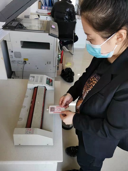 城發(fā)物業(yè)公司精心設計排版,為4個公租房小區(qū)制作了2萬多張居民出入證,從1月26日開始分批次地為4個公租房小區(qū)的1.6萬多戶居民辦理出入證,并且為了保證卡片的持久耐用性,在居民提供相片、有效身份證件復印件、詳細住址、聯(lián)系方式等個人身份信息后對卡片進行了覆膜塑封處理。考慮到公租房小區(qū)人口密度大、喜扎堆、防護意識較薄弱的特點,物業(yè)公司公租房小區(qū)項目處在開展物業(yè)服務工作的同時按時間、分批次,保證所有居民排隊、有序、安全的辦理出入證。
