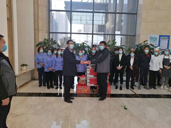 2月10日上午,城發(fā)公司副總經(jīng)理、物業(yè)公司董事長(zhǎng)趙永強(qiáng),物業(yè)公司黨支部書記娜仁、經(jīng)理史濤等一行走訪慰問(wèn)了春節(jié)前夕仍堅(jiān)守在工作一線的員工們,為他們送去節(jié)日慰問(wèn)品,并致以真摯的節(jié)日祝福。