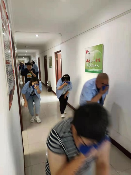現(xiàn)場(chǎng)總指揮、公司副經(jīng)理任強(qiáng)要求,疏散引導(dǎo)組立即引導(dǎo)疏散公司各處室人員,按照火災(zāi)事故逃生動(dòng)作要點(diǎn)分別從公司兩個(gè)應(yīng)急出口進(jìn)行緊張有序的逃生,搶險(xiǎn)救援組負(fù)責(zé)在安全區(qū)域進(jìn)行接應(yīng)、集結(jié),同時(shí)各小組立即進(jìn)入應(yīng)急工作狀態(tài)。