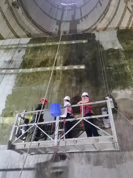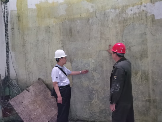 檢查小組通過采用外力敲擊及肉眼觀察的方式對(duì)B車間煙囪內(nèi)壁防腐層施工質(zhì)量進(jìn)行詳細(xì)檢查。