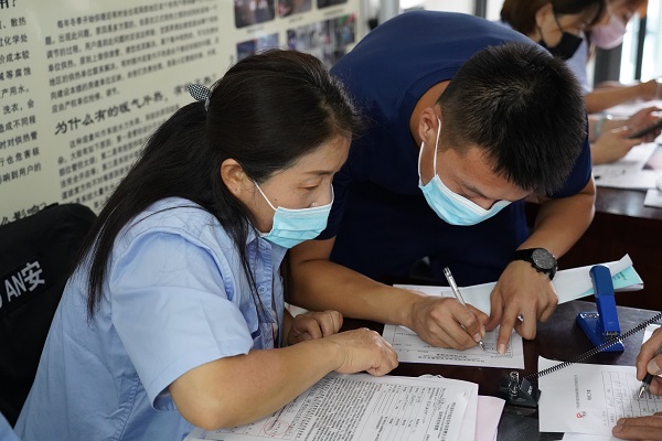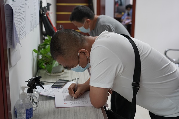 "請(qǐng)?zhí)顚懸幌屡R停申請(qǐng)表,請(qǐng),慢走!"工作人員有條不紊的接待用戶,不時(shí)為用戶解答著問(wèn)題。