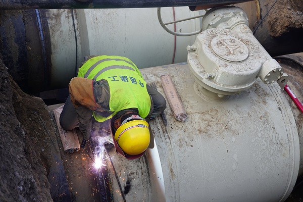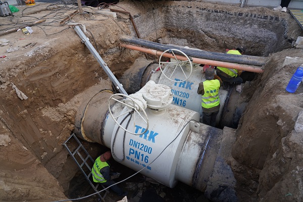 在金橋路一次管網(wǎng)改造施工現(xiàn)場,筆者看到DN1200主管線的球閥焊接工作已接近尾聲。據(jù)介紹,之后將陸續(xù)進行探傷、保溫、閥門井砌筑等工程。該處工程是在主管網(wǎng)加裝管道閥門,起到對主線關(guān)斷的作用,在冬季供暖期遇到突發(fā)事件可避免造成大面積停供,有效保障金橋區(qū)域今冬的正常供暖,預(yù)計9月中旬完工。