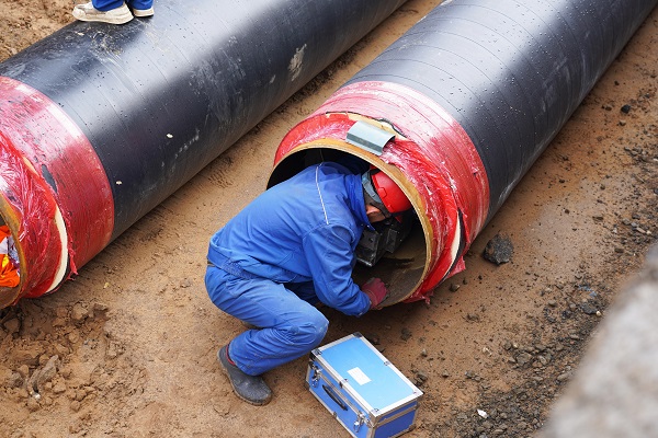 在施工現(xiàn)場,筆者看到,5米深的管溝內(nèi),一段一段已焊接好的DN700管線向遠方延伸著。在管溝內(nèi),工人們穿著厚厚的棉服,有的在為管道探傷、有的在為管道焊接口做保溫。