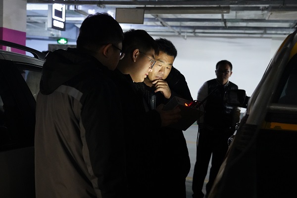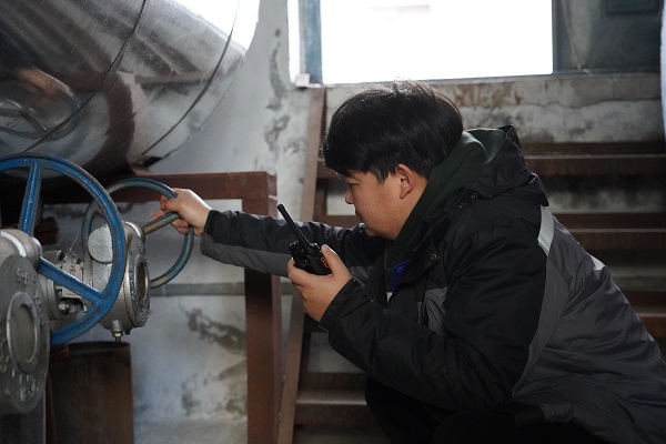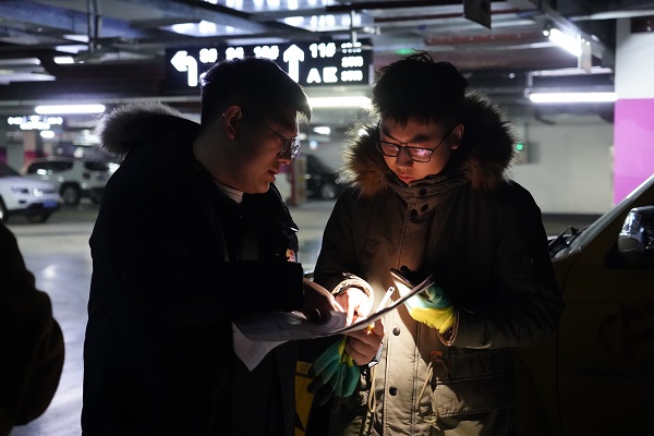11月12日上午,在巨海城八區(qū)6號居民樓副一層,城發(fā)橋靠分公司第六運營所的員工們正在進行低區(qū)二次網(wǎng)主管道的流量測量工作。