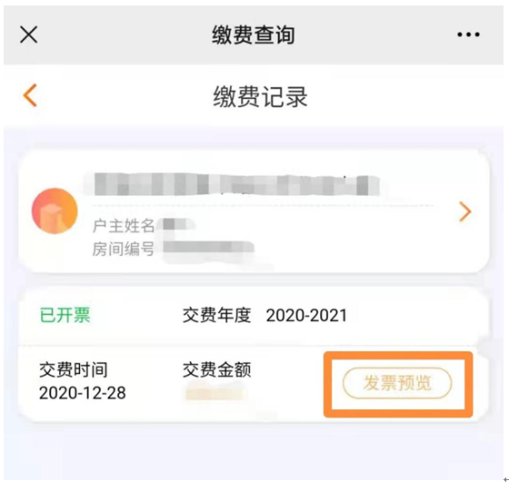 ⑦驗(yàn)證之后即可查詢房屋繳費(fèi)記錄,在該頁(yè)面點(diǎn)擊發(fā)票預(yù)覽