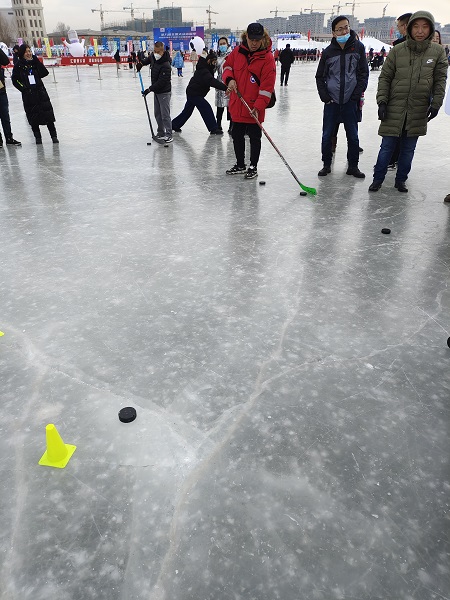 運動會設(shè)置了冰球射擊、雪圈投擲、冰車大作戰(zhàn)、冰壺撞擊、抽冰陀螺5個項目,形式簡單、易于參與、趣味性強?,F(xiàn)場,冰壺、冰球射門設(shè)施擺滿了整個場地,職工們躍躍欲試。運動會上,集團公司運動員不懼嚴(yán)寒,團結(jié)一致、相互鼓勵,充分享受著運動帶來的樂趣,也在運動中加深了對冰雪運動的熱愛與了解。