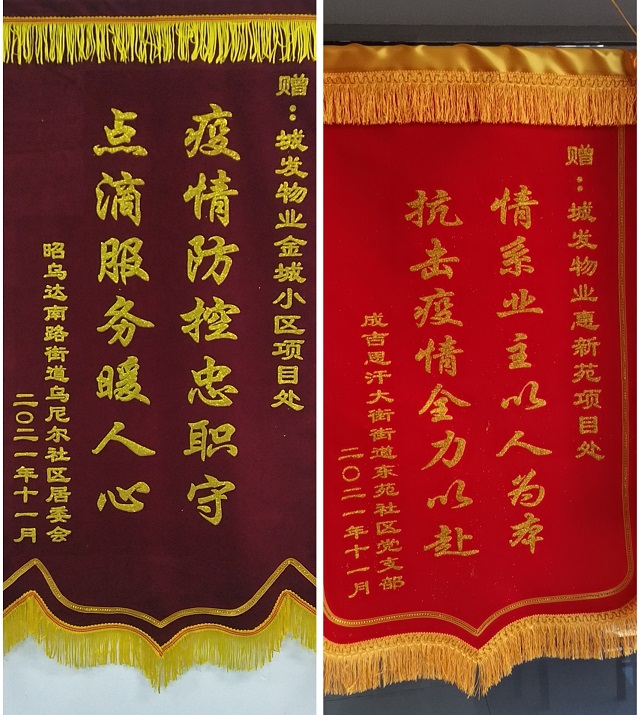 2021年城發(fā)物業(yè)公司年度取得了可喜成績,2021年被呼和浩特市物業(yè)管理協(xié)會(huì)評(píng)為2021年度先進(jìn)單位、管理的金城小區(qū)項(xiàng)目被呼和浩特市物業(yè)管理協(xié)會(huì)評(píng)為2021年度呼和浩特市物業(yè)管理示范項(xiàng)目,史濤、郝曉東、范宇昆、董美麗四名同志被呼和浩特市物業(yè)管理協(xié)會(huì)評(píng)為2021年"抗議勇士"與"最美物業(yè)人","金城小區(qū)"、"陽光美居"、"惠新苑"項(xiàng)目處分別被賽罕區(qū)烏尼爾社區(qū)居委會(huì)、富力社區(qū)、新城區(qū)東苑社區(qū)居委會(huì)贈(zèng)送"疫情防控忠值守,點(diǎn)滴服務(wù)暖人心"錦旗和榮譽(yù)證書。