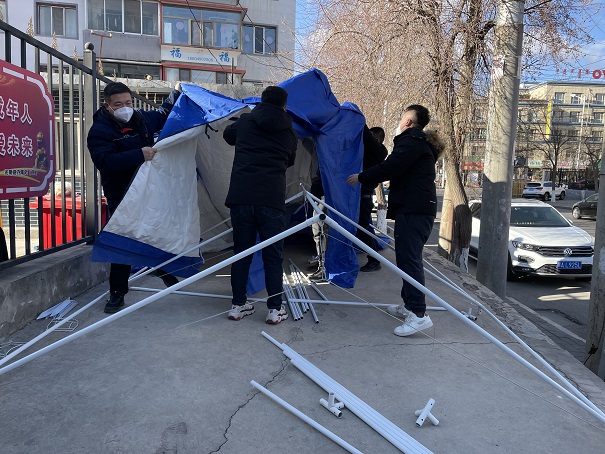 連日來(lái),公司的近百名員工陸續(xù)被派往社區(qū)一線支援疫情防控工作,事務(wù)管理中心安排專人和他們保持聯(lián)系,及時(shí)把一次性醫(yī)用外科口罩、N95口罩、防護(hù)服、防護(hù)手套、隔離面罩等疫情防控物資送到各個(gè)值守點(diǎn)。2月28日,事務(wù)管理中心主任胡夢(mèng)園、黨支部書記劉紅梅在電子路社區(qū)值守點(diǎn)查看時(shí),發(fā)現(xiàn)當(dāng)班的員工在寒風(fēng)中堅(jiān)守著,及時(shí)為他們搭建了帳篷,送來(lái)了電暖氣。