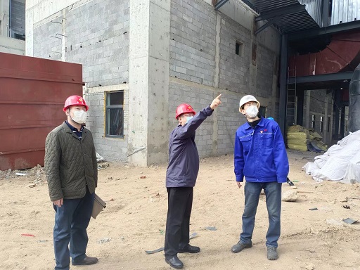 在三合村分公司200T燃煤熱水鍋爐等量替換工程現(xiàn)場(chǎng),楊杰詳細(xì)聽取了工程的進(jìn)展及復(fù)工復(fù)產(chǎn)工作準(zhǔn)備情況,并針對(duì)目前存在的困難和問題,現(xiàn)場(chǎng)辦公研究解決方案。