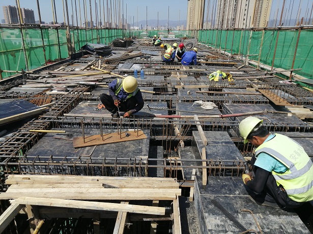 施工現(xiàn)場,工人們頭頂似火驕陽,腳踩蒸騰的混凝土砌塊,不畏鋼筋混凝土作業(yè)面的熱浪,仍在熱火朝天地施工。他們揮動著鐵鍬、綁扎著鋼筋、砌筑著磚塊。曬得黑紅的臉頰,有的都脫了皮;摘下口罩,汗珠滴到混凝土砌塊上,瞬間蒸發(fā);脫下衣服,都泵擰出水來。但他們用實際行動保障工期進度。