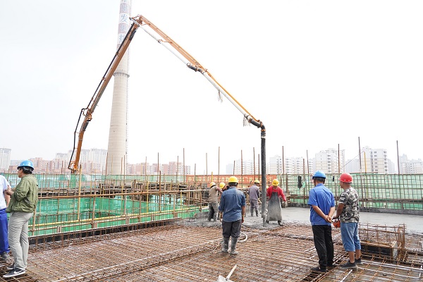 施工負責人粟瑞榮介紹,今天鍋爐房主廠房(層高27.5米)正式封頂,現(xiàn)正在進行鍋爐基礎耐火磚的砌筑,下一步將開始鍋爐局部輔件安裝與土建二次結(jié)構(gòu)穿插的施工階段。施工單位緊掐時間節(jié)點,三班倒全天候施工,以確保按時完工。