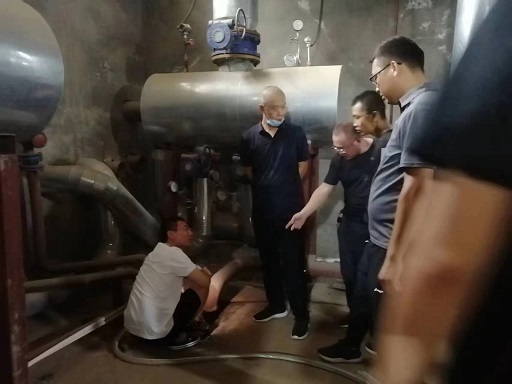 走訪中,每到一個(gè)運(yùn)營(yíng)所首先查看了當(dāng)天人員值班情況,并仔細(xì)地詢問了各所防汛物資準(zhǔn)備情況。在理想佳苑熱力站和所里工作人員一起查看了地下站的積水坑和備用排污泵情況。在中海錦繡城熱力站和宇泰熱力站查看了站內(nèi)滲漏點(diǎn),并要求運(yùn)營(yíng)所負(fù)責(zé)人盡快和物業(yè)聯(lián)系,解決滲水點(diǎn)存在的安全隱患,要即刻做好設(shè)備的防滴漏防水保護(hù)。在檢修所一次網(wǎng)抽水現(xiàn)場(chǎng)作業(yè)現(xiàn)場(chǎng),要求近兩天停止抽水作業(yè),保證施工作業(yè)安全,同時(shí)將工作重心轉(zhuǎn)移到近兩天防汛排水保障搶險(xiǎn)任務(wù)中。