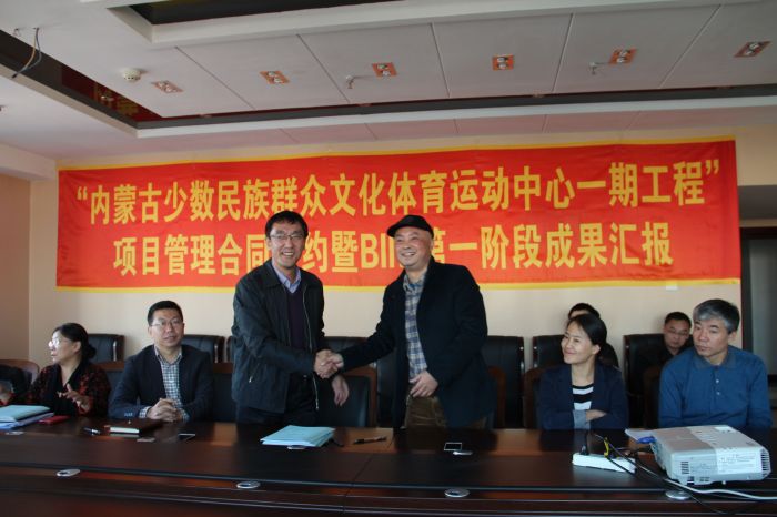 2015年11月26日上午,城發(fā)房地產(chǎn)公司與重慶聯(lián)盛建設(shè)項目管理有限公司,就內(nèi)蒙古少數(shù)民族群眾文化體育運(yùn)動中心項目管理合同進(jìn)行了簽約。會議中,重慶聯(lián)盛項目管理公司對本項目BIM第一階段成果進(jìn)行了展示。BIM,即建筑信息模型(Building Information Modeling),是以建筑工程項目的各項相關(guān)信息數(shù)據(jù)作為模型的基礎(chǔ),進(jìn)行建筑模型的建立,通過數(shù)字信息,仿真模擬建筑物所具有的真實信息。該項目的BIM展示,從結(jié)構(gòu)、外形等方面生動形象地展現(xiàn)了工程情況,優(yōu)點是,可在BIM技術(shù)應(yīng)用過程中及時發(fā)現(xiàn)問題,糾正施工圖設(shè)計,減少實際工程中可能的誤差。