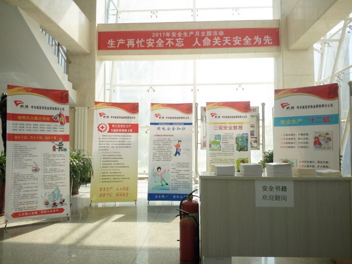 為了切實做好供熱生產(chǎn)安全工作,積極預(yù)防和消除各級各類安全隱患,金橋分公司成立了安全宣傳小組,開展安全生產(chǎn)宣傳工作,具體由生產(chǎn)安全技術(shù)處指導(dǎo)、協(xié)調(diào)各部門開展安全生產(chǎn)宣傳月活動,并編發(fā)宣傳材料,組織宣傳活動。分公司各運營所、檢修所組織員工開展形式多樣的安全生產(chǎn)宣傳活動,張貼宣傳掛圖、展板,組織安全生產(chǎn)培訓(xùn),宣傳安全生產(chǎn)知識等。在安全宣傳活動期間,機關(guān)辦公場所每天定時語音播放安全生產(chǎn)相關(guān)法律知識,金橋分公司以這次活動為契機,讓安全生產(chǎn)理念根植于每位員工腦海之中,牢固樹立生產(chǎn)安全意識,保障員工人身安全和供熱生產(chǎn)運行安全。