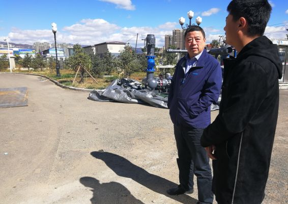 在財政廳東站景泰小區(qū)供熱管網(wǎng)項(xiàng)目收尾施工現(xiàn)場,副經(jīng)理任強(qiáng)向負(fù)責(zé)該項(xiàng)目的施工負(fù)責(zé)人詢問了施工的具體情況,對項(xiàng)目工作進(jìn)展情況給予充分肯定。