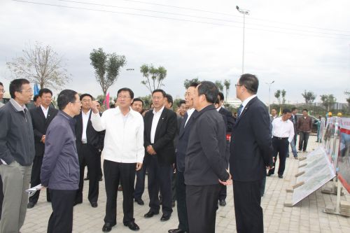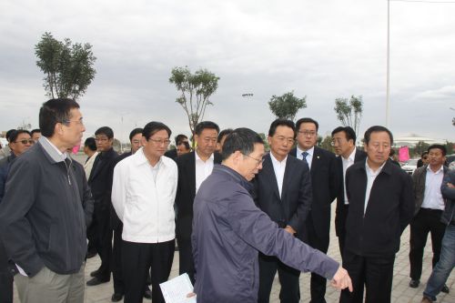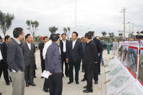 2012年9月12日,中國農(nóng)業(yè)發(fā)展銀行領導一行來我市考察東客站項目工程,市長秦義、副市長孫建華等陪同考察。圖為公司副總經(jīng)理史繼文介紹東客站項目建設情況。