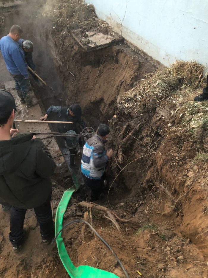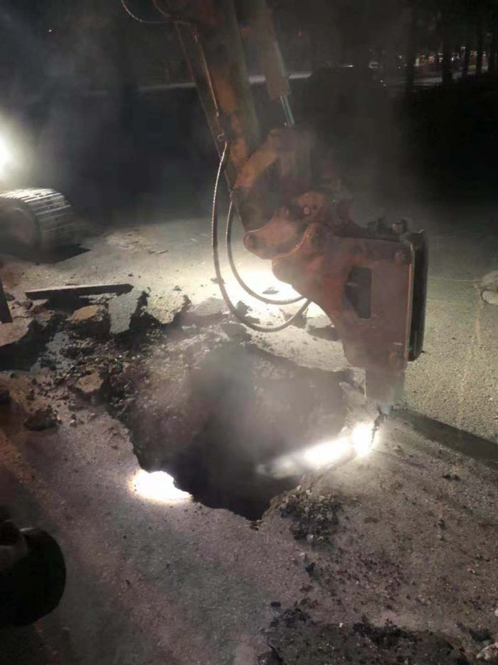 11月11日下午,中繼泵房專項高壓電閃落,1#、2#、3#循環(huán)泵因自動保護驟停。出現(xiàn)異常后,調度立即通知京能電廠降頻,檢修車間立即組織人員進行巡線,經過15個小時不間斷排查,12日上午,發(fā)現(xiàn)如意舊網(wǎng)主線和1#站支線漏水嚴重。分公司檢修車間、運營二所和保駕護航單位迅速制定搶修方案組織搶修,經理丁成斌、副經理鄭紅飛親自到現(xiàn)場指導搶修工作。為準確找到失水點,搶修人員穿著隔熱服進入管溝內查找漏點。由于漏水點管線錯綜復雜,施工難度非常大。接近管道時,發(fā)現(xiàn)漏點位置靠近井壁且管道腐蝕嚴重,壁厚較薄,采取整理外層補焊的方式進行修補。