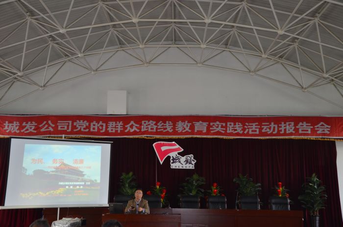 2013年11月21日,城發(fā)公司舉辦“為民、務(wù)實、清廉”為主題的“黨的群眾路線教育實踐活動報告會”,報告會由內(nèi)蒙古黨校黨史、黨建教研部主任孫杰教授主講。孫杰教授從“從嚴(yán)要求、領(lǐng)導(dǎo)帶頭、優(yōu)化環(huán)境、健全制度”方面詮釋了這次群眾路線教育實踐活動開展的真諦。