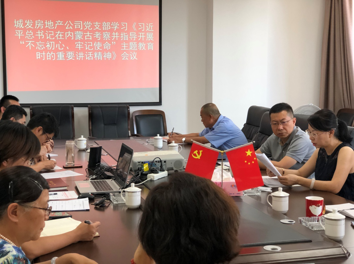 7月25日,房地產(chǎn)公司黨支部組織公司全體黨員干部和入黨積極分子,在城發(fā)集團11樓會議室學習了習近平總書記在內(nèi)蒙古考察并指導開展“不忘初心、牢記使命”主題教育時的重要講話精神。