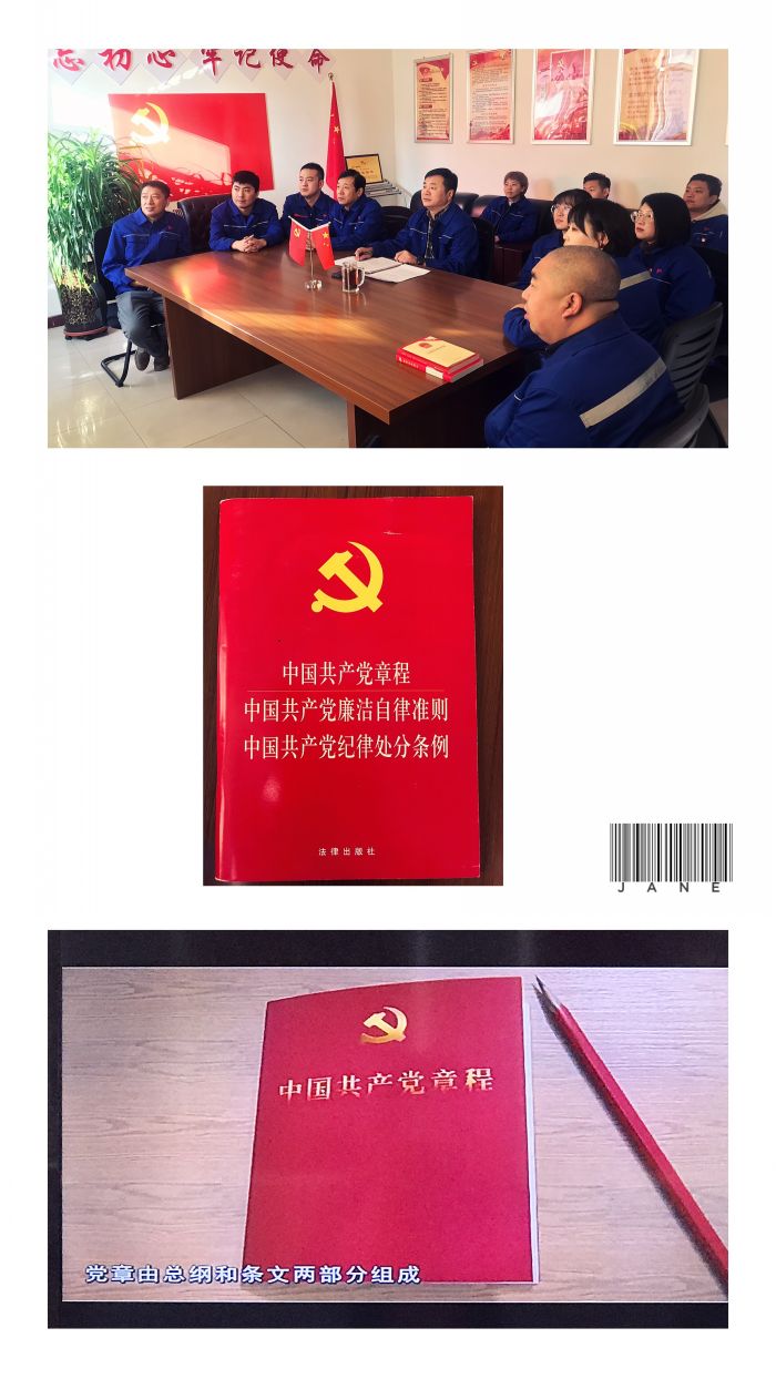 會(huì)上,集體觀看了黨章電視輔導(dǎo)材料,分別從黨章總述、共產(chǎn)黨員、黨的組織、黨的干部、黨的紀(jì)律等5個(gè)方面對(duì)黨章進(jìn)行了深入解讀。以輪流誦讀的形式學(xué)習(xí)了《關(guān)于新形勢(shì)下黨內(nèi)政治生活的若干準(zhǔn)則》《中國共產(chǎn)黨紀(jì)律處分條例》《中國共產(chǎn)黨廉潔自律準(zhǔn)則》。