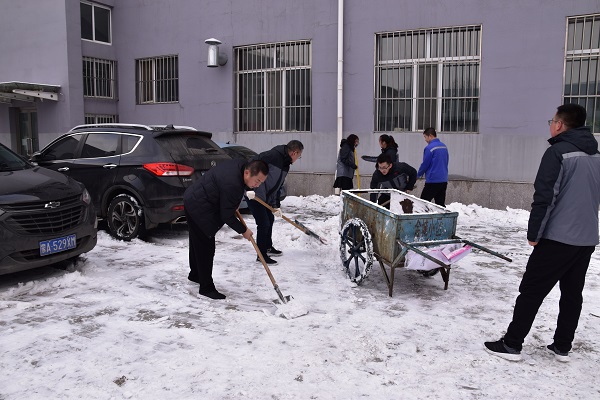 16日,辛家營分公司黨支部組織黨員、環(huán)節(jié)干部、團(tuán)員青年及普通職工共計(jì)30多人開展了清除廠區(qū)內(nèi)積雪的活動(dòng)。