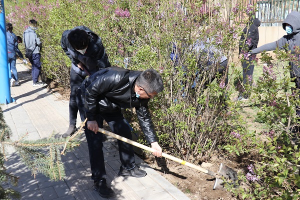上午8點50分,大家如約在集合點集合了,領(lǐng)取鐵鍬后,在賽罕區(qū)綠化辦工作人員的示范指導下,開始為樹木挖坑、培土,為今年的林帶澆灌養(yǎng)護工作做好準備。沒有指揮,沒有具體分工,沒有足夠的鐵鍬手套,但大家都默契地一鍬接一鍬、一坑接一坑、一棵接一棵地接力培植。有的人看到坑不夠深,就去加深;有的人看到土培的不夠結(jié)實,就去培土,大家干得熱火朝天,越干越起勁兒,不知不覺身上開始熱起來。參與植樹的一位女同志說:“這樣的植樹活動不僅可以綠化美化環(huán)境,還可以鍛煉身體”。兩個鐘頭過去了,原本已經(jīng)一年多沒有培土護養(yǎng)的樹木經(jīng)過大家的愛心之手像穿上了整齊的制服,一個個有模有樣。只見大家的鞋子衣服上都沾滿沙土,臉上也是被大風吹上的塵土,可是每個人都那么心滿意足、歡聲笑語。