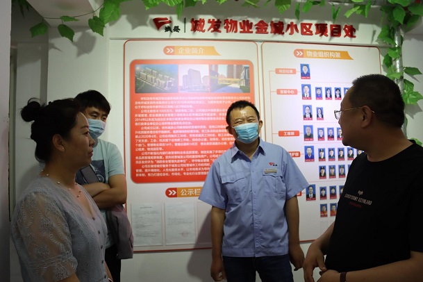 6月22日下午,呼和浩特市住宅小區(qū)環(huán)境秩序管理局局長高翔、副局長云梅一行參觀了物業(yè)公司金城小區(qū)項(xiàng)目處的標(biāo)準(zhǔn)化物業(yè)建設(shè)。并與黨支部書記娜仁相互交流了物業(yè)公司黨建工作經(jīng)驗(yàn)。