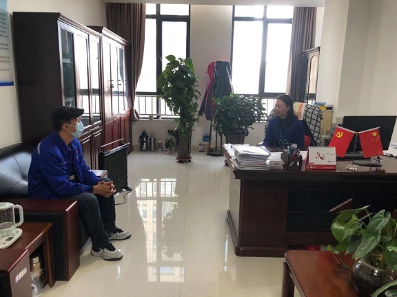 此次活動主要訪談接待公司困難職工,了解他們在工作、生活及家庭方面存在的困難,征求意見建議,力所能及的幫助解決實(shí)際問題。黨支部書記郭依群還接待了公司新入職的職工,和他們促膝而談,詳細(xì)介紹了公司的發(fā)展情況,鼓勵(lì)他們要發(fā)揚(yáng)青年職工敢于爭先、吃苦耐勞的精神。同時(shí)郭依群同志還同積極入黨的同志進(jìn)行了談心談話,了解其思想動態(tài)和工作情況,并要求他們要加強(qiáng)學(xué)習(xí)、提高思想認(rèn)識和政治覺悟,時(shí)刻以共產(chǎn)黨員的標(biāo)準(zhǔn)要求自己,爭取早日入黨。
