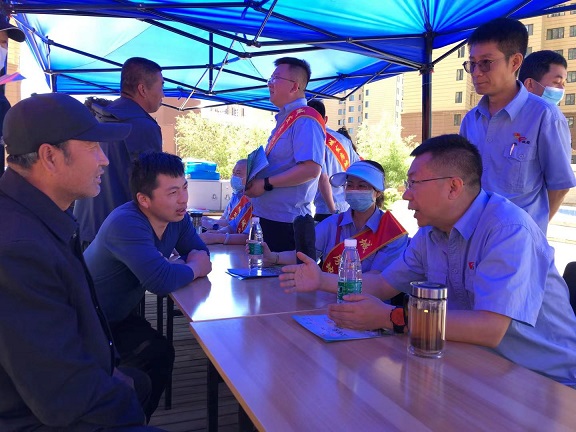 電腦、座椅的布置等準(zhǔn)備工作 ?;顒?dòng)中,現(xiàn)場(chǎng)氣氛活躍 ,人流較多,志愿者們不怕風(fēng)吹日曬,熱情的向廣大群眾發(fā)放了公司專(zhuān)門(mén)制作的公租房銷(xiāo)售和產(chǎn)權(quán)辦理宣傳圖冊(cè),并現(xiàn)場(chǎng)為部分購(gòu)房群眾發(fā)放購(gòu)房發(fā)票和網(wǎng)簽合同。大家現(xiàn)場(chǎng)還詳細(xì)介紹了公租房購(gòu)買(mǎi)條件、流程以及辦理不動(dòng)產(chǎn)權(quán)證等政策知識(shí),耐心的解答了群眾關(guān)于購(gòu)買(mǎi)公租房和辦理產(chǎn)權(quán)政策的各種疑慮 、困惑 。同時(shí)黨支部書(shū)記郭依群同志 、經(jīng)理李錚同志積極聽(tīng)取群眾意見(jiàn)建議,主動(dòng)協(xié)調(diào)市住建局開(kāi)放小區(qū)北門(mén),方便群眾出行 。