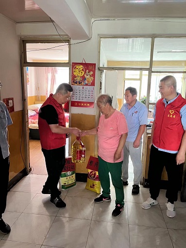 活動中,志愿者們分別來到獸醫(yī)站3號樓一單元101室的獨居空巢老人楊鳳英家和旺地嘉苑小區(qū)2號樓5單元4樓中戶低保戶殘疾人楊春杰家走訪慰問。其中,楊鳳英老人75歲,患有腎病,兒女不在身邊,多年獨居,無經(jīng)濟來源,志愿者們得知老人的情況后,主動詢問老人的病情和醫(yī)保情況,并叮囑老人疫情期間注意自身防護(hù);低保戶殘疾人楊春杰,57歲,無兒無女,半身不遂,生患?xì)埣?,生活不便,無經(jīng)濟來源,生活十分困難。志愿者們還為兩戶人家送去米、面、油等慰問品,表達(dá)了分公司黨支部的慰問和關(guān)愛。
